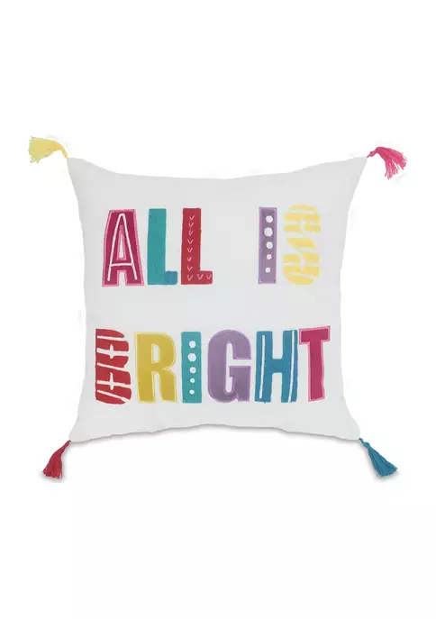 Accented with colorful tassels on each end, this decorative throw pillow from Arlee Home Fashions Inc.™ is embroidered with “All is Bright” wording.