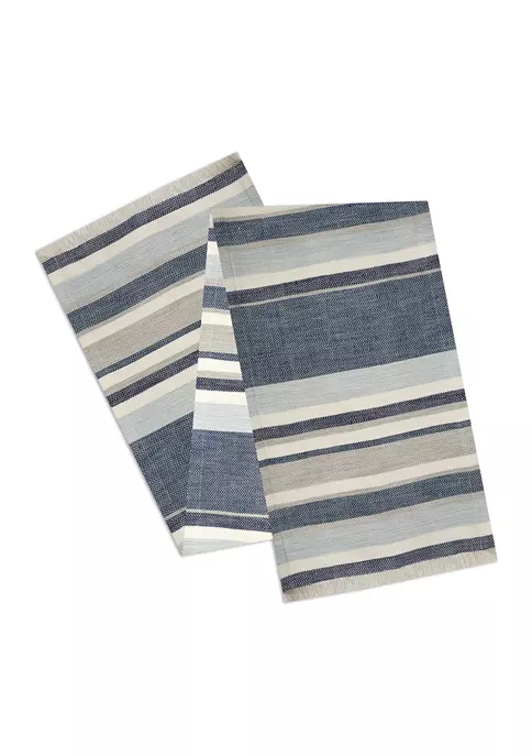 This runner from Arlee Home Fashions Inc.™ features a natural and navy stripe print and a casual 100% cotton fringe.