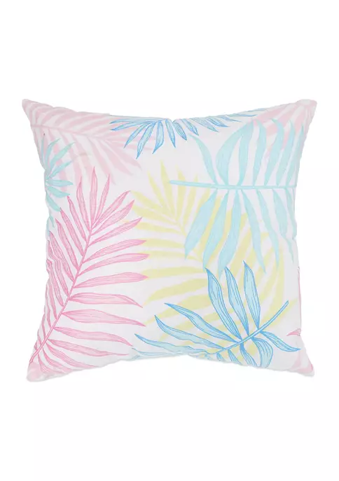 Tropical leaf outlines in a flurry of bright colors decorate this summery pillow from Arlee Home Fashions Inc.™.