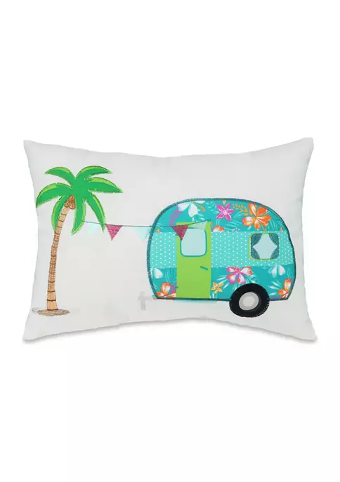 Decorate your RV with this pillow from Arlee Home Fashions Inc.™ that’s detailed with a graphic of a multicolored camper parked beside a palm tree.