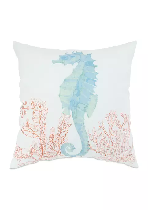 This pillow from Arlee Home Fashions Inc.™ features a seahorse with pink coral embroidery.