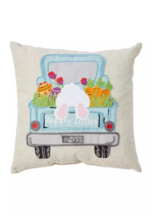 This festive pillow from Arlee Home Fashions Inc.™ features a truck motif with bunny embroidery and appliqué details.