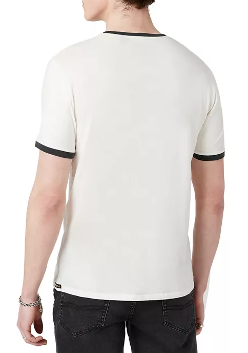 In a relaxed fit made of a single jersey, this vintage-inspired t-shirt from BUFFALO DAVID BITTON® sports a contrasting trim at the neckline and sleeves, and a faded logo graphic on the front.