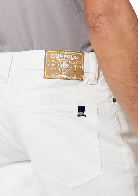 A lightweight pair of denim shorts in a vacation white, these Deans shorts sport a relaxed, straight-cut leg. This particular style includes a super stretch fabric, for maximum ease of wear, and contrasting rivets and hardware. Five-pocket styling, zip fly. A solid piece to complement any top you choose, perfect for the cruise or the boardwalk!