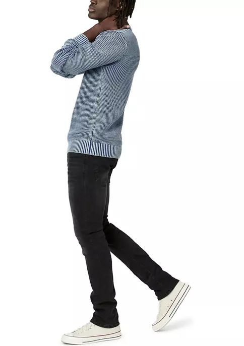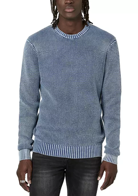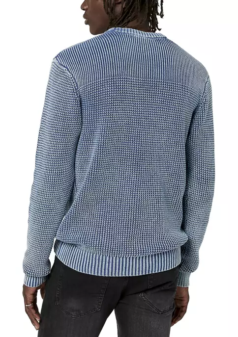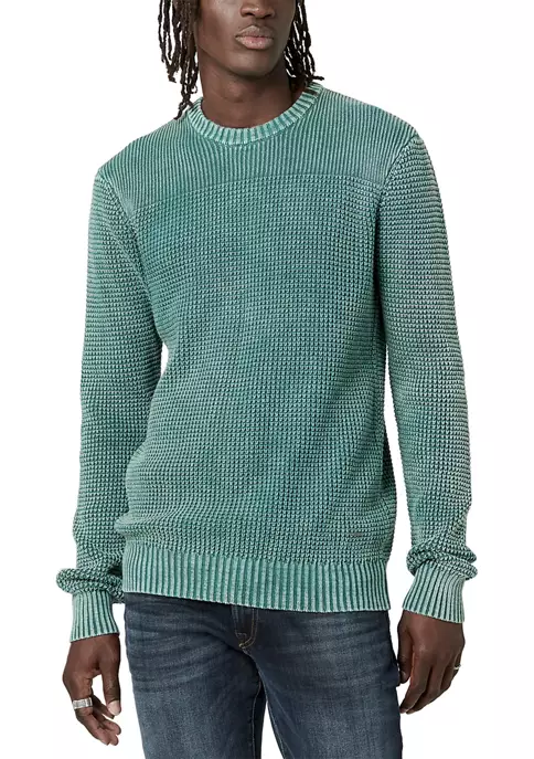 Made in a textured knit, this classic, pure cotton sweater features ribbed trim at the crew neck collar, sleeve cuffs, and hem. Alternating stitchwork at the yoke adds interest to the texture.