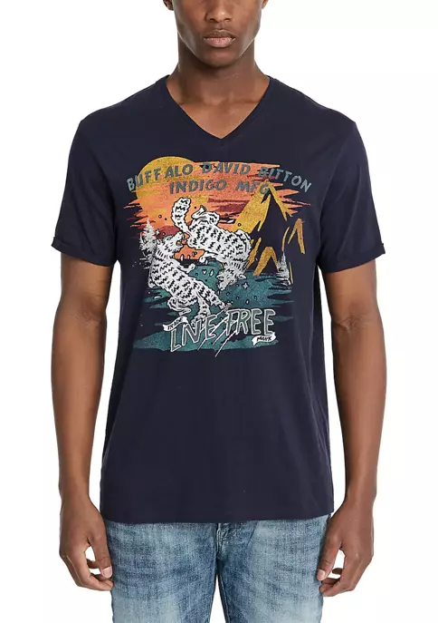 Step into adventure with this t-shirt from BUFFALO DAVID BITTON®, complete with a graphic of two animals fighting next to a mountain pass.
