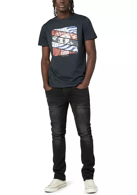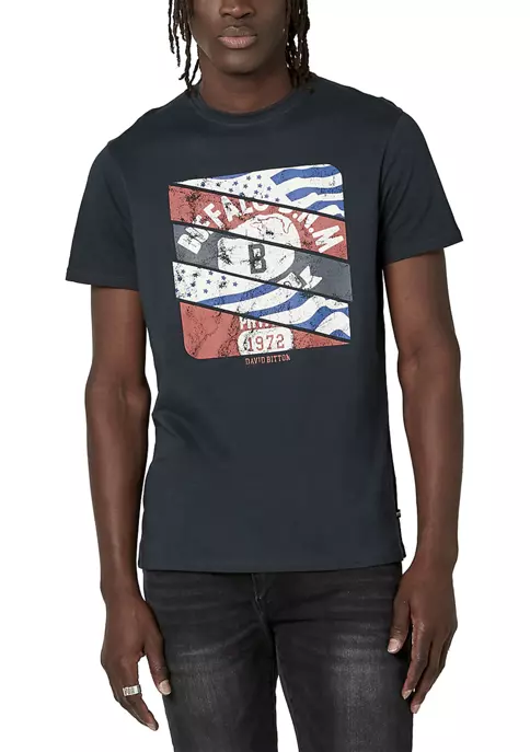 A crew neck t-shirt, the Tachop features an eye-catching mashup of several logo and image prints. The Tachop is one of the BUFFALO DAVID BITTON® familiar logo shirts, with a vintage wash, for an edge all its own.