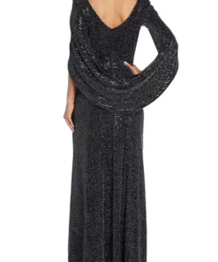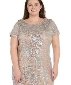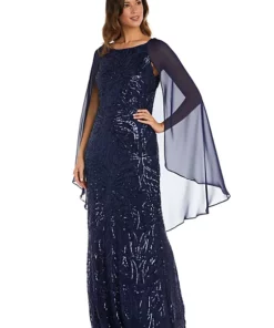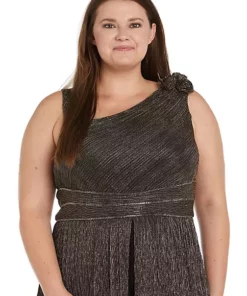 R & M Richards 1Pc Hilo Clip Chiffon With Stripe Lurex Dress And Rhinestone Waist Detail