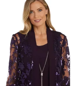 R & M Richards 1Pc Hilo Clip Chiffon With Stripe Lurex Dress And Rhinestone Waist Detail
