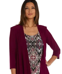 R & M Richards 2Pc Fly Away 3 4 Sleeve Jacket Dress W Jewel Neckline