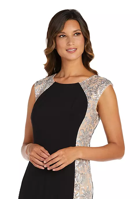 R & M Richards 2Pc Cascade Front Jacket Over Surplice Bodice Long Dress With Full Skirt
