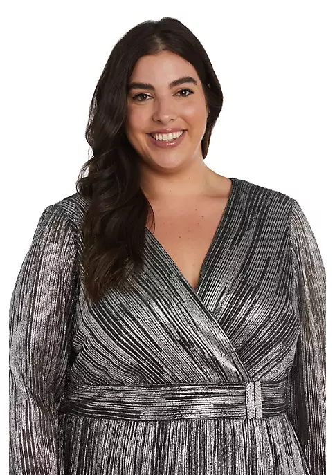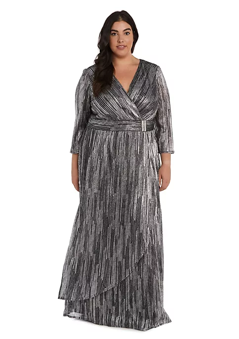 R & M Richards Plus Size Embroidered Sequin Sculpt Side Panel Dress