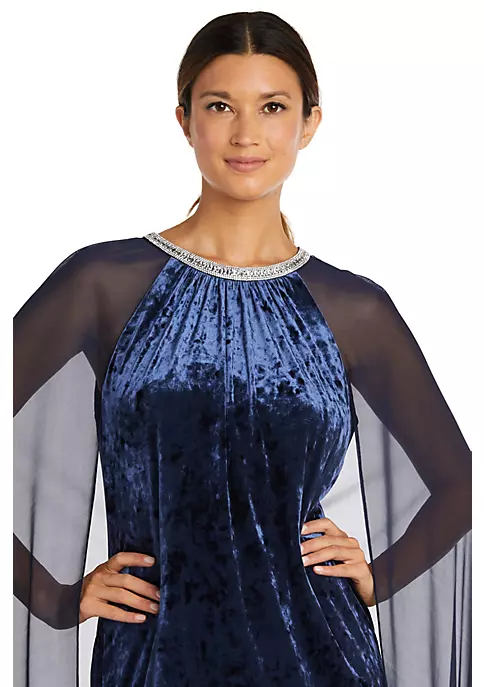 R & M Richards 2Pc Printed Chiffon Jacket Dress With Solid Tank Dress And Detachable Necklace