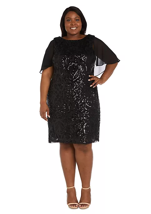 R & M Richards 2Pc Printed Chiffon Jacket Dress With Solid Tank Dress And Detachable Necklace