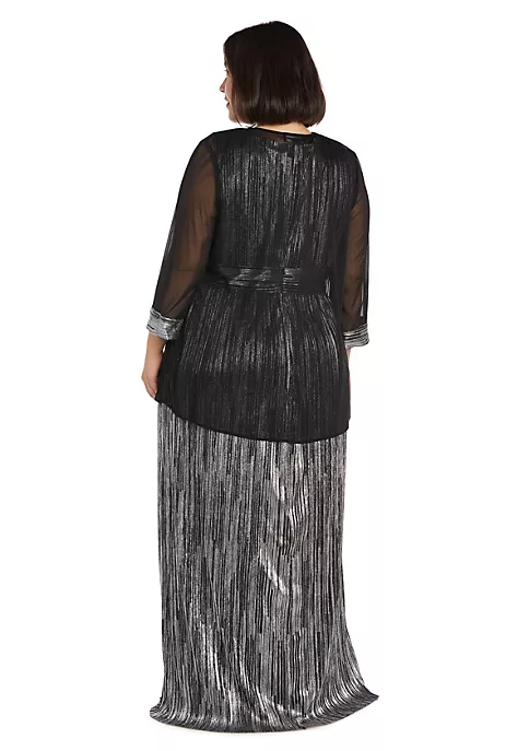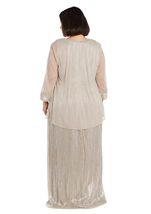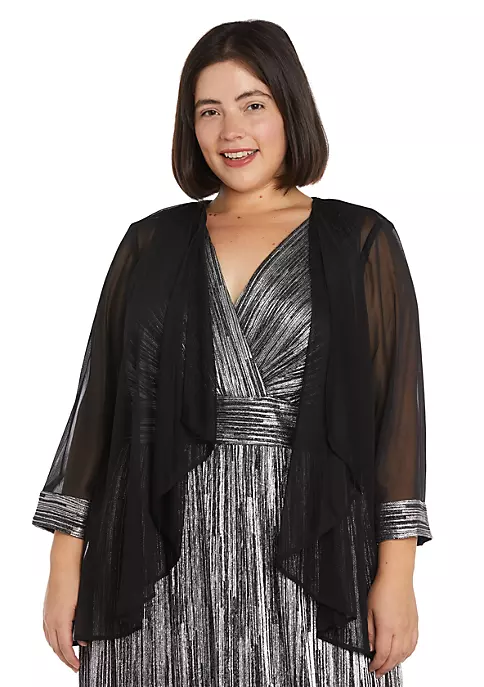 R & M Richards 2Pc Cascade Front Jacket Over Surplice Bodice Long Dress With Full Skirt