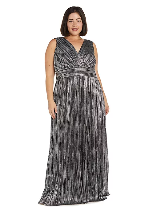R & M Richards 1Pc Long Dress W 3 4 Sleeve Surplice Bodice And Waistband Overlay Drape Skirt