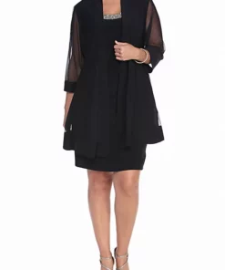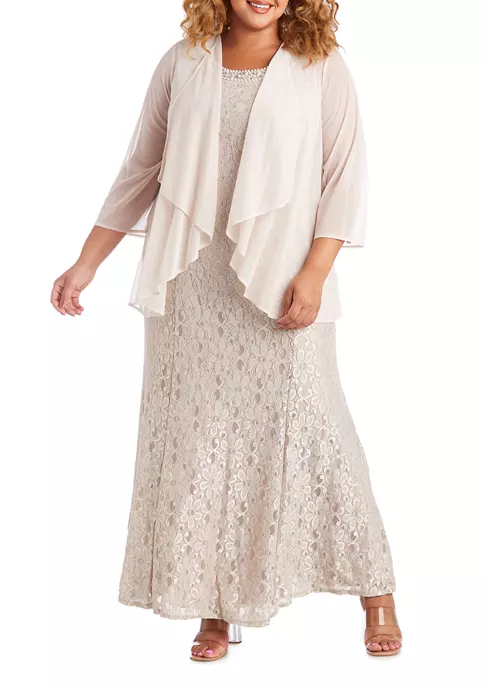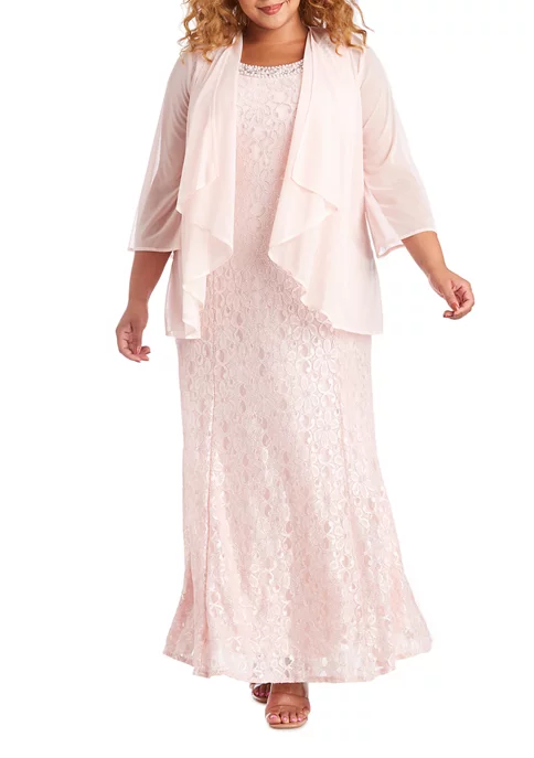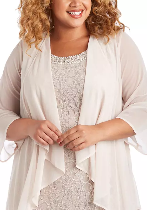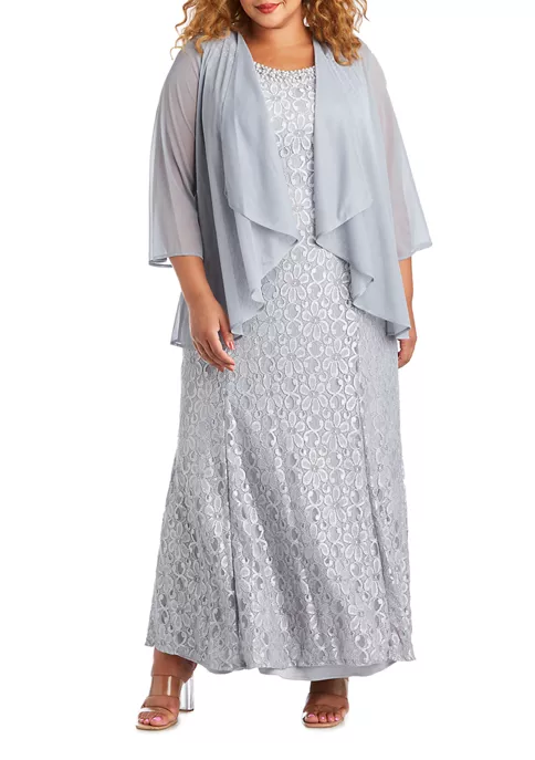 R & M Richards Plus Size Embroidered Sequin Sculpt Side Panel Dress