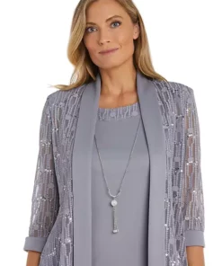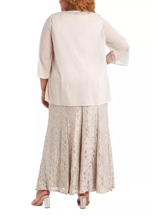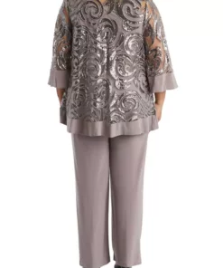 R & M Richards Plus Size 3-Piece Sequin Swing Jacket and Pants Set
