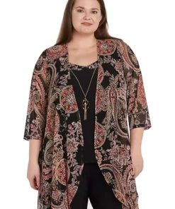 R & M Richards 3Pc Puff Print Power Mesh And Ity Duster Pant Set