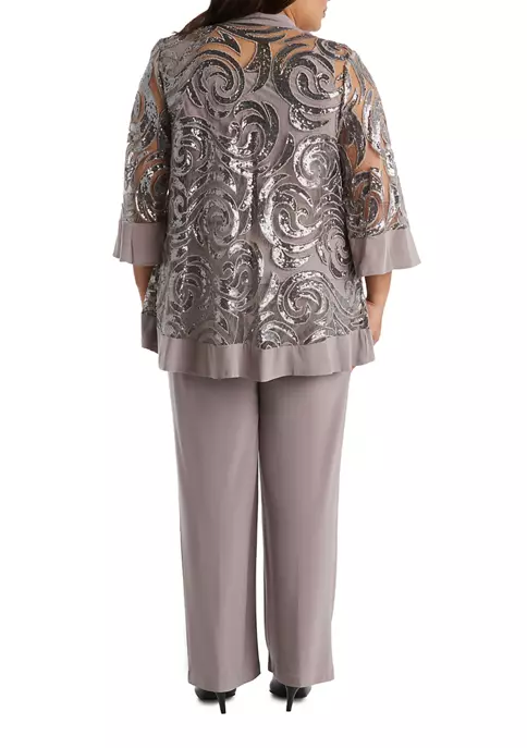 R & M Richards 2Pc Rhinestone Neck Detail Capelet Tunic Pant Set