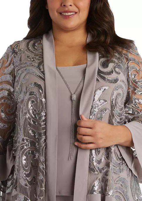 R & M Richards 2Pc Metallic Pb Rib Knit And Ity Swing Jacket Dress