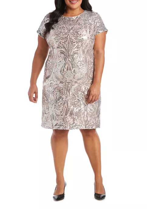 R & M Richards Plus Size Embroidered Sequin Sculpt Side Panel Dress
