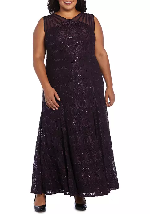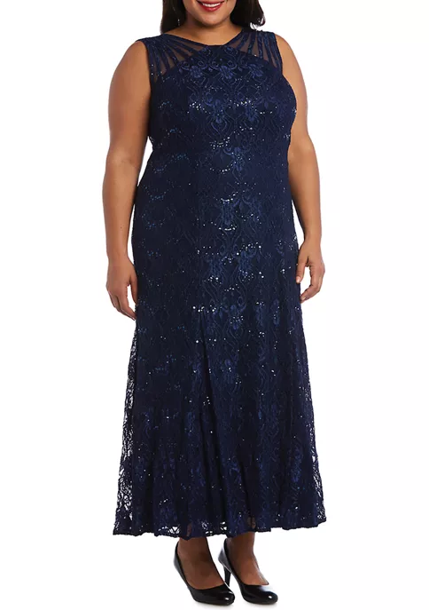 R & M Richards 2Pc Printed Chiffon Jacket Dress With Solid Tank Dress And Detachable Necklace