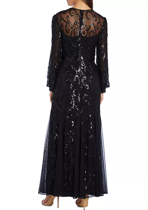 Stitched with eye-catching embroidery throughout, this dress by R&M Richards comes with beautiful long bell sleeves and an invisible zip closure, allowing the wearer to direct all attention to the front ensemble during any formal occasion.